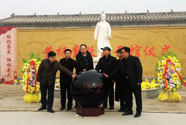 在当天的启用仪式上,部队战士向董振堂将军塑像敬献了花篮,所有参加人员全体默哀。新河县委宣传部长苑冀川与将军后人董乃煌等代表共同启动董振堂故居开馆按钮。