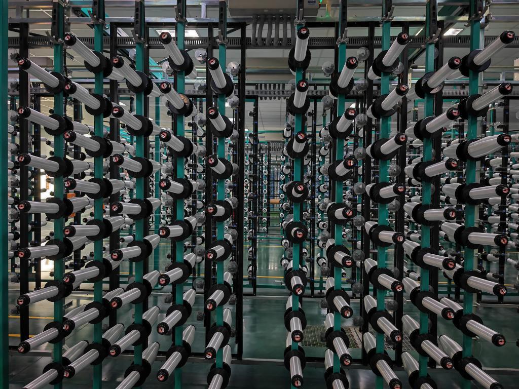 这是2025年3月12日在河南光远新材料股份有限公司车间拍摄的电子玻纤。新华社记者刘振坤摄