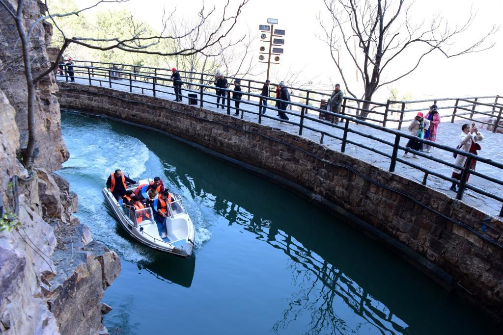 2025年3月18日,游客在红旗渠风景区青年洞附近游玩。新华社记者朱祥摄